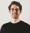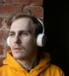 A hand reaches towards a laptop with a website open displaying a banner advertisement. Beside the laptop, a glass with a straw is visible. The scene is dimly lit, possibly in a cafe or home environment. A smartwatch is worn on the wrist of the hand.